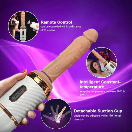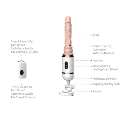 • Equipped with a smart heating feature that makes you feel the warm heat of a real man dick. Use the push buttons on the front to turn on the warming function, the vibration, or the thrusting. Cycle through the vibration and thrusting options by pressing the buttons or using the remote control.
